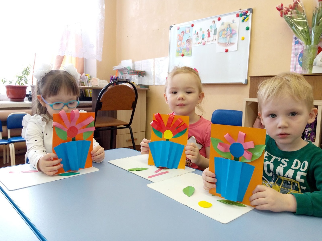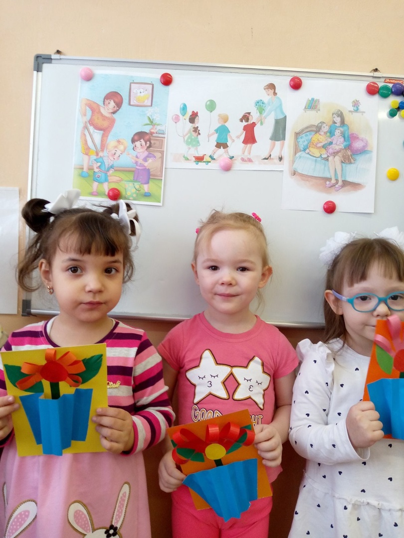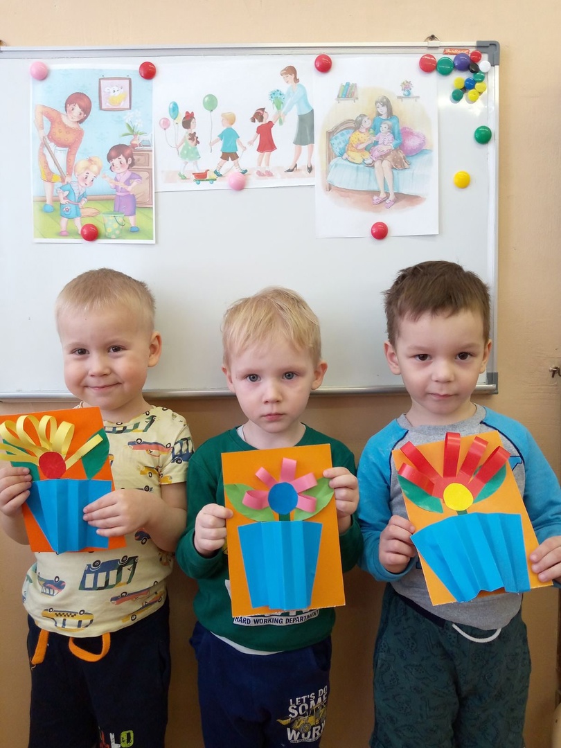 Дети младшей группы порадовали своих мам и бабушек подделками к празднику,сделанными своими руками.